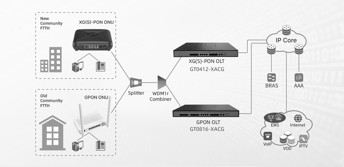 • Metropolitan high-speed optical fiber network networking solution: Since XGS-PON supports long-distance transmission, it can be used to build a metropolitan area network, covering multiple areas within the city to meet urban wide area communication needs.